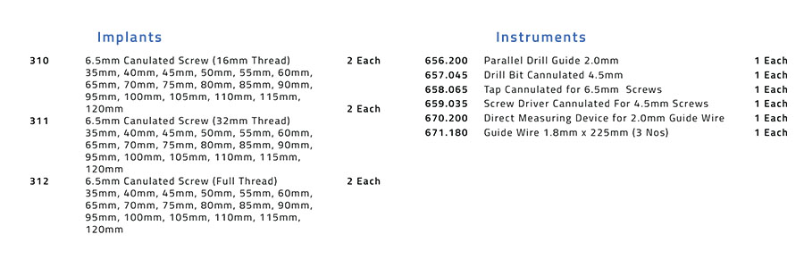 AGC.14 6.5mm Cannulated Screw and instruments in Graphic Case