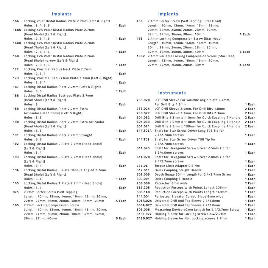 AGC.42 Distal Radius 2.7mm Implants & Instruments Set